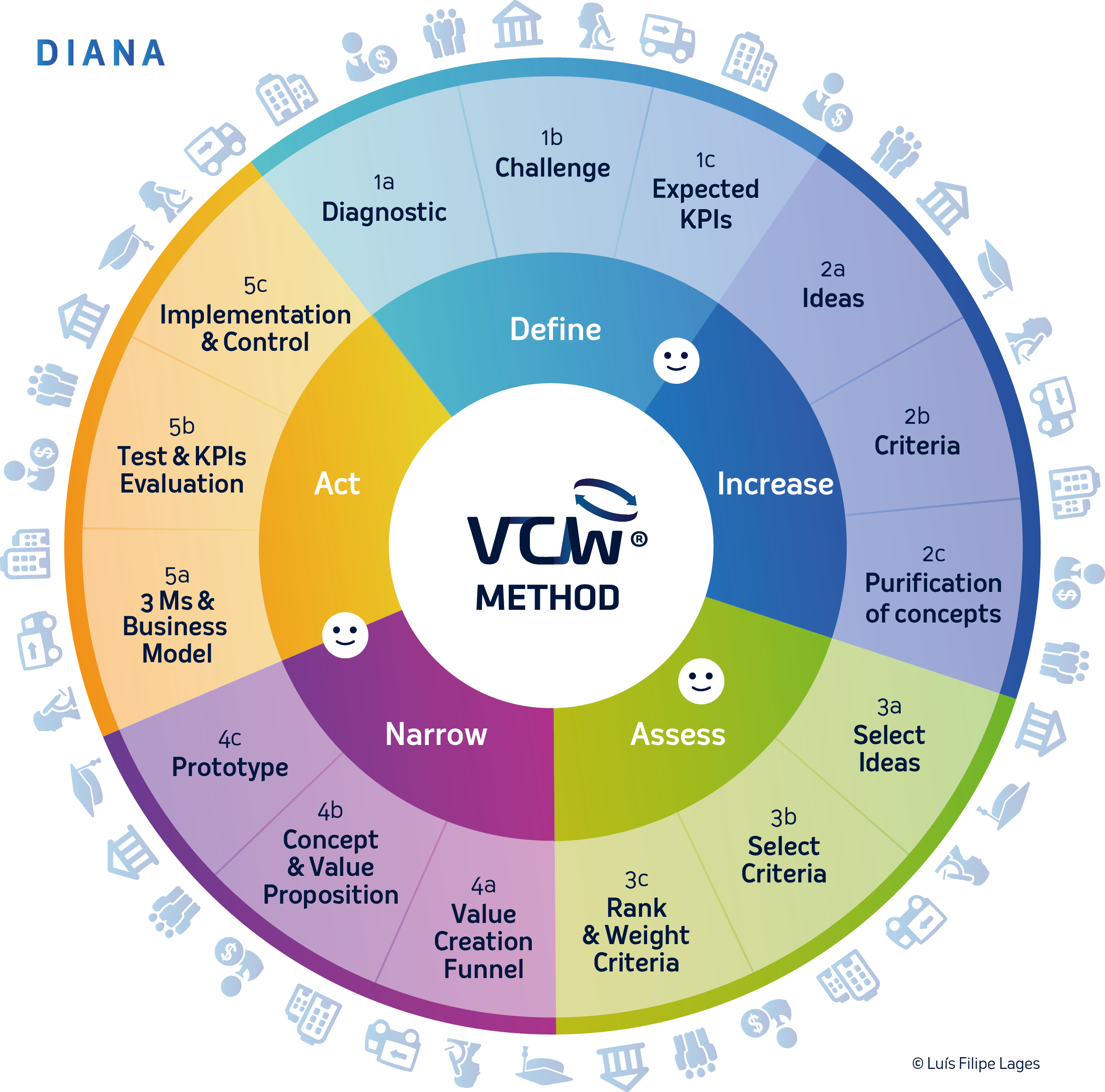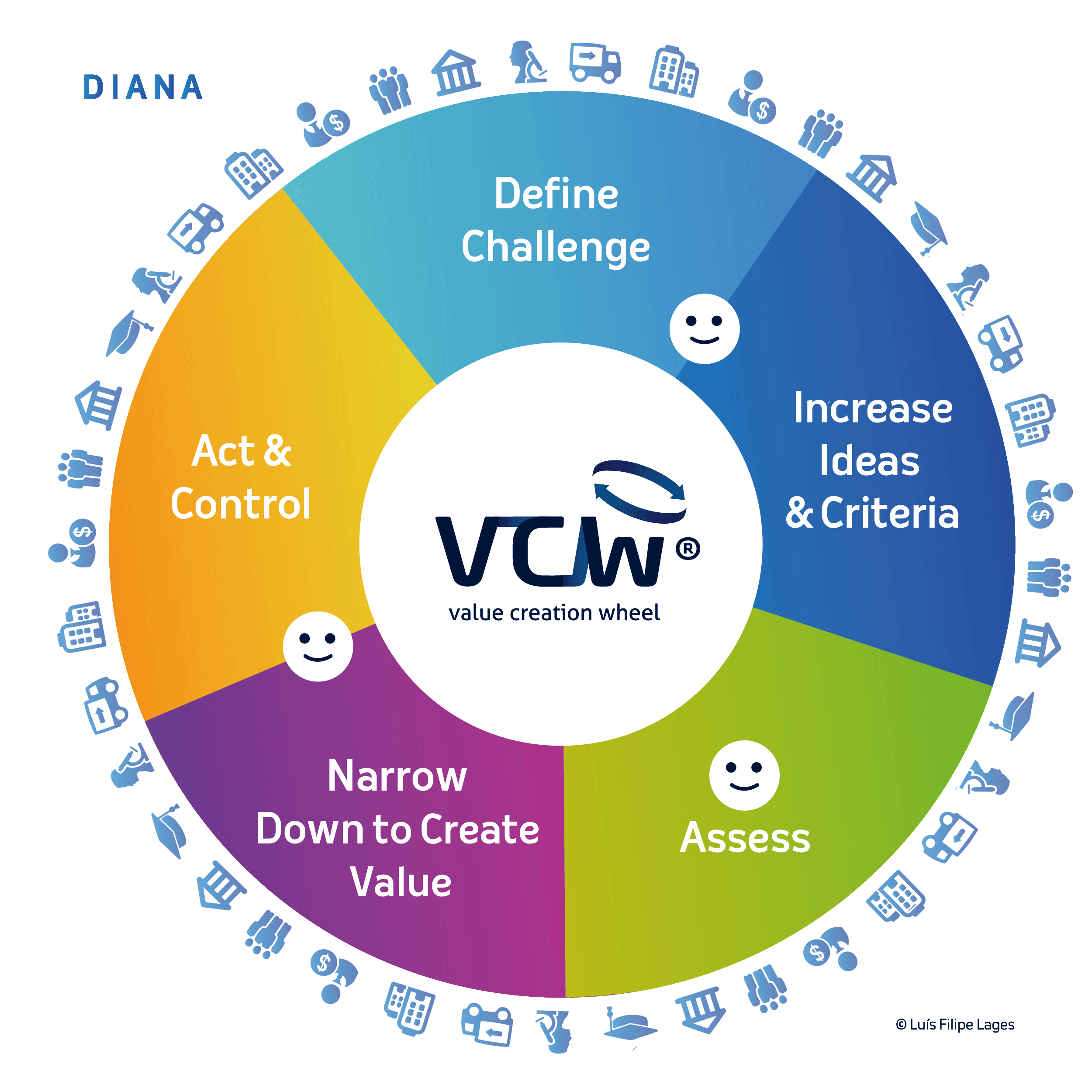 A metodologia VCW® acredita que o processo de geração de soluções deve ser aberto ao input de vários parceiros internos e externos (ex. colaboradores, consumidores, fornecedores, distribuidores, governo local), dos "angels" e "devil’s advocate".